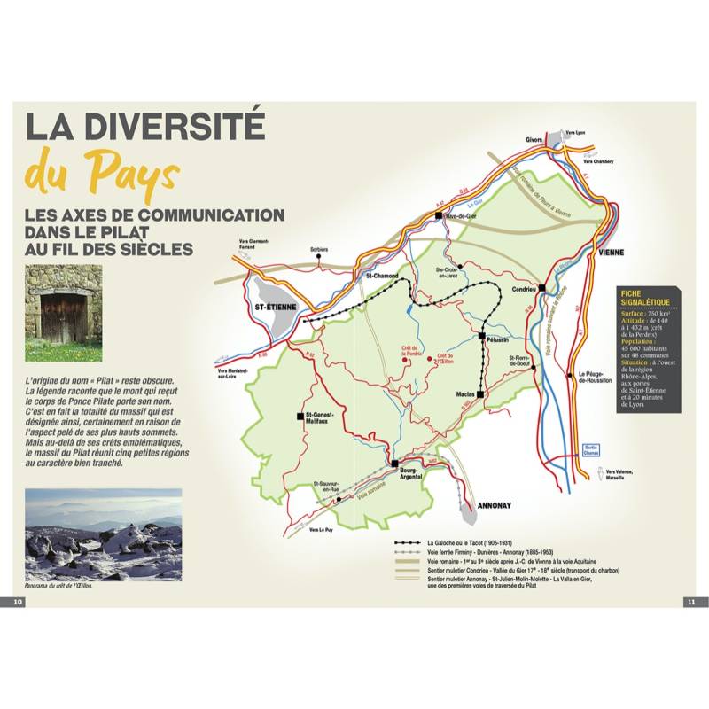 intérieure ! Une présentation culturelle du Pilat : géologie, milieu naturel, histoire et traditions, architecture, économie... 41 itinéraires de petite randonnée et 1 boucle de deux jours pour une pratique familiale et sportive cartographie sur fond IGN au 1 : 25 000 pour se repérer facilement Détail des centres d'intérêts Renseignements pratiques et adresses utiles.