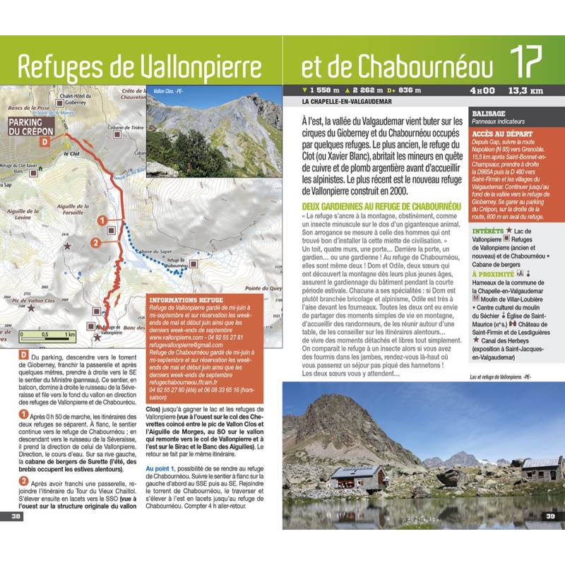 La collection Les Incontournables change de charte ! Le guide :Des balades dans 20 refuges différents du massif des Écrins, dont les sommets mythiques (le Dôme des Ecrins, la Meije) et les vallées sauvages se répartissent de part et d'autre des départements de l'Isère et des Hautes-Alpes.Le guide contient une double-page centrale avec une présentation des refuges emblématiques des Écrins : refuge de l'Aigle, refuge du Soreiller, refuge de Pelvoux, refuge de l'Olan. Auteur(e)(s): Patrick Espel est basque. Chercheur au Laboratoire national de Métrologie et d'Essais en région parisienne, il parcourt les montagnes de France et du monde depuis sa plus tendre enfance. Il est déjà auteur chez Chamina Edition de nombreux topoguides dont « 20 refuges de montagne en famille » tome 1 & 2, « Les 40 plus beaux lacs des Écrins », « Les 80 plus beaux lacs du Parc national des Pyrénées ». Chamina fait peau neuve : nouvelles couverture et présentation