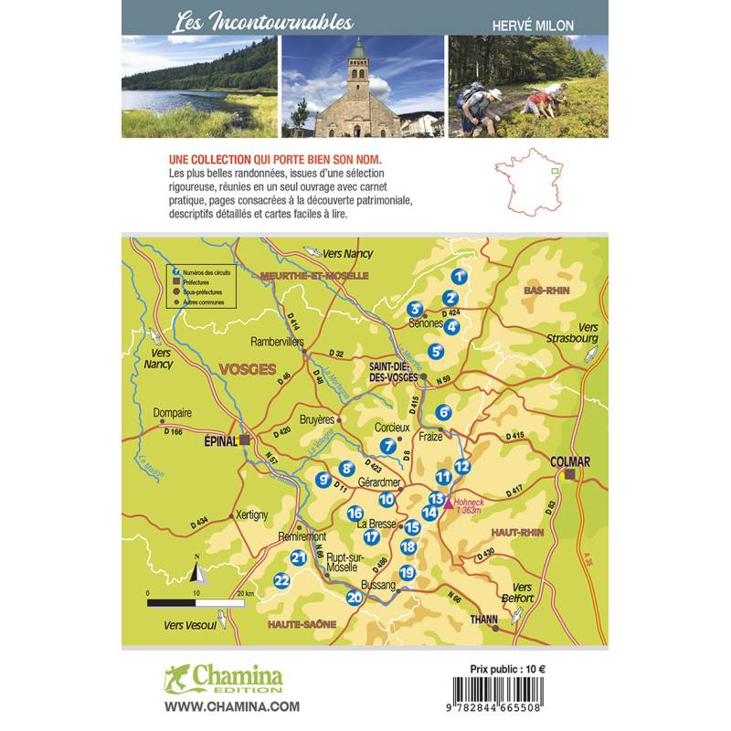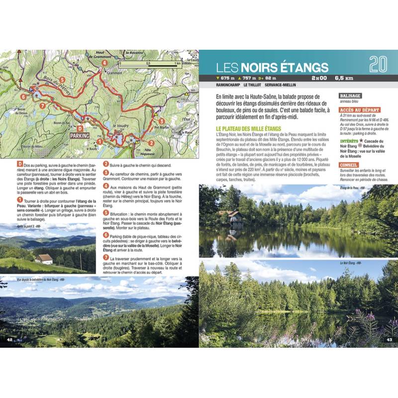 22 balades originales et variées pour explorer le massif des Vosges, qui se déploie à l'ouest du département éponyme et dont le sud fait partie du parc naturel régional des Ballons des Vosges. Frontière naturelle entre l'Alsace et la Lorraine, ces montagnes de moyenne altitude sont chargées d'histoire et riches d'un milieu naturel unique, qui se dévoile au fil des nombreux sentiers de randonnée.