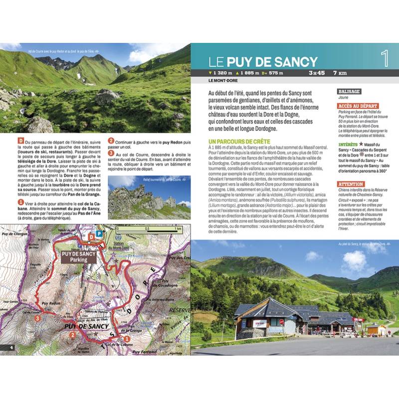22 balades et randonnées incontournables pour explorer le massif du Sancy, dans le département du Puy-de-Dôme, au cur du Parc naturel régional des Volcans d'Auvergne. Situé au sud-ouest de Clermont-Ferrand, à moins d'une heure de voiture, ce massif volca-nique tranche avec la chaîne des Puys par son aspect alpin. Villages typiques et stations thermales, lacs pittoresques et sommets emblématiques (le puy de Sancy, culminant à 1 885 m, est le plus haut du Massif central), relief et géologie remarquables en font une destination privilégiée pour la marche à pied.