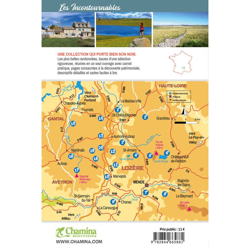 20 circuits de randonnée pour découvrir les hauts plateaux de l'Aubrac, au cur du département de la Lozère, dont un circuit en ville pour visiter le bourg de Marjevols. Compris entre 620 et 1 550 m d'altitude, les circuits se situent entre Saint-Chély-d'Apcher au nord, Mende au sud, Nasbinals à l'ouest et le lac de Charpal à l'est.