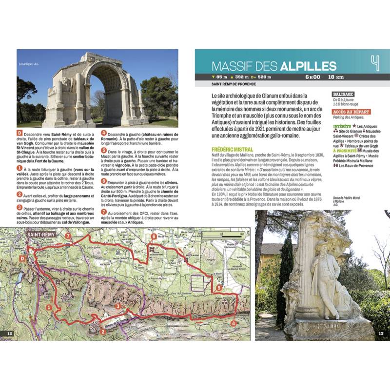 21 balades pour découvrir à pied les Alpilles, petit massif montagneux situé au nord-ouest du département des Bouches-du-Rhône, qui domine les oliveraies de ses 498 m. Partez sur les traces de Van Gogh, Frédéric Mistral ou Alphonse Daudet... En passant par des sites incontournables, tels Saint-Rémy-de-Provence ou les Baux.