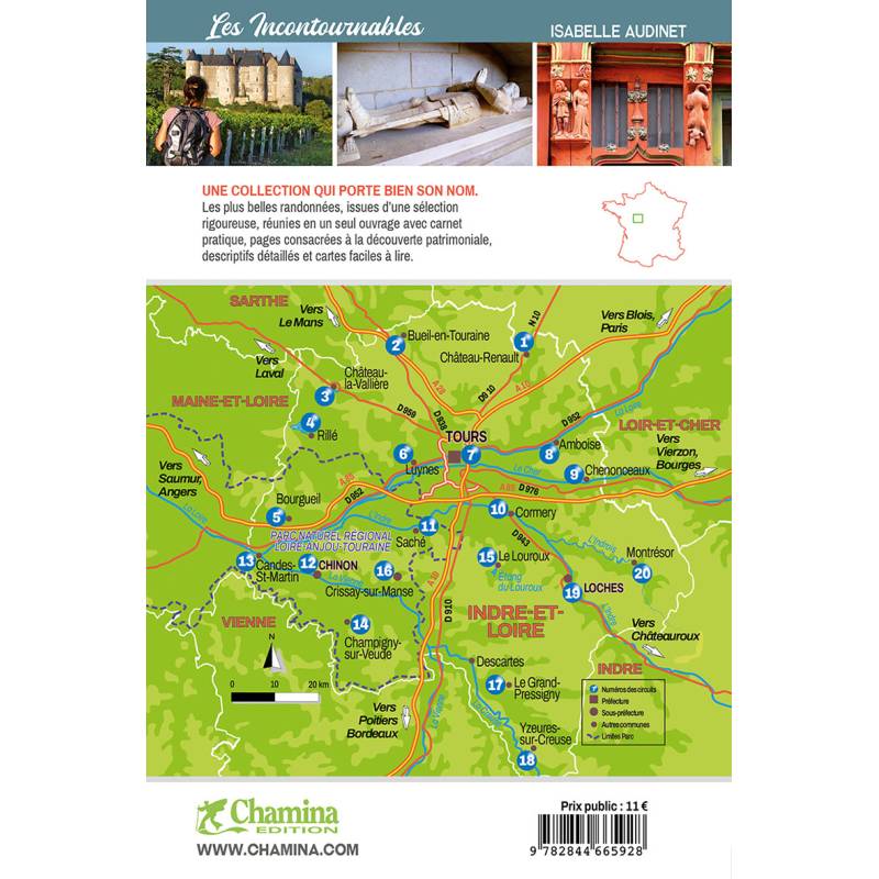 20 balades pour découvrir les richesses du département d'Indre-et-Loire, dont un circuit à Tours. Correspondant presqu'entièrement à l'ancienne province de Touraine, on ne compte plus les atouts et merveilles se trouvant sur le territoire : le val de Loire, classé au patrimoine mondial de l'Unesco, le Parc naturel régional Loire-Anjou-Touraine l'Indre, la Vienne et la Creuse, la myriade de châteaux tous plus somptueux les uns que les autres Entre patrimoine naturel et patrimoine bâti et culturel, la Touraine donne mille raisons de se laisser parcourir à pied.