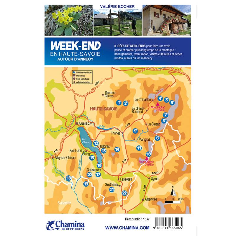 8 idées de lieux autour d'Annecy où passer le week-end et faire une vraie pause pour pro-ÿ ter des montagnes du quart sud-ouest de la Haute-Savoie : Thorens-Glières, Le Chinail-lon, La Clusaz, Manigod, Talloires, Duingt, Alby-sur-Chéran et Seythenex. Pour chaque destination, retrouvez deux ou trois propositions de circuits à la journée, ainsi qu'une sélection d'hébergements, de restaurants, de suggestions de sorties et visites