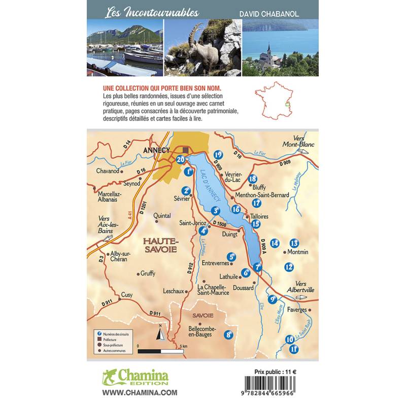 20 balades réparties sur le département de la Haute-Savoie, avec une incursion en Savoie et un circuit pour découvrir la ville d'Annecy, dont les jolis canaux lui valent le surnom de Venise des Alpes .