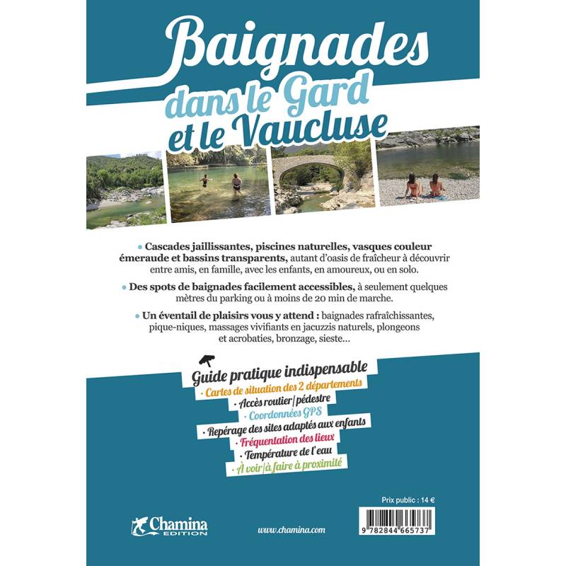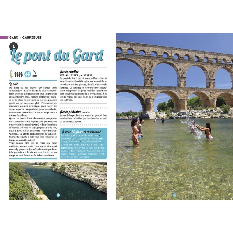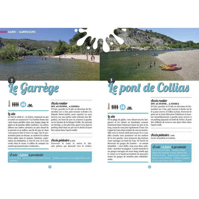 Un ouvrage qui réunit les plus belles baignades sauvages des départements du Gard et du Vaucluse, séparés par le Rhône mais réunis par le soleil. A l'ouest du fleuve, le Gard (Occitanie) offre un climat et une végétation méditerranéens synonymes de vacances, ainsi qu'un relief contrasté où de nombreux cours d'eau s'écoulent dans un paysage tantôt de garrigue, tantôt forestier, des plaines rhodaniennes jusqu'aux montagnes du Massif central. A l'est, le Vaucluse (Provence-Alpes-Côte d'Azur) s'étend des contreforts alpins à la vallée du Rhône, du Toulourenc à la Durance. Et dévoile des forêts méditerranéennes, des collines sauvages, des rivières résurgentes, des canyons inattendus.