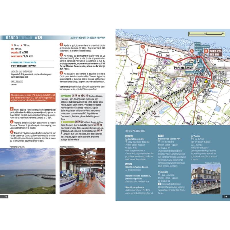 25 balades familiales ou sportives pour explorer la Normandie et ses nombreux terroirs. Entre bocage et littoral, les cinq départements normands off rent, en plus d'une grande diversité de paysages, de sérieux atouts gastronomiques indissociables de la cuisine fran-çaise : plateau de fromage quatre étoiles (neufchâtel, livarot, camembert, pont-l'évêque), vergers abondants (cidre, pommeau, poiré, calvados), douceurs inoubliables (sablés d'Asnelles, caramels d'Isigny...), sans oublier les produits de la mer, incontournables. Partez sur les plus beaux sentiers normands à la découverte du riche patrimoine culinaire de la région !