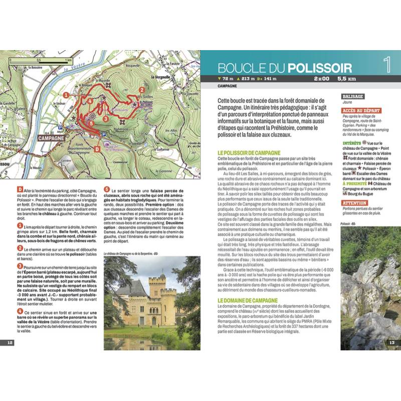 Les 35 circuits sont concentrés dans le sud-est du département, et sont répartis en 8 secteurs géographiques : vallée de la Vézère, Lascaux, vallée des Beunes, vallée de la Dordogne, vallée de la Couze, Périgord méridional, Périgord noir, Périgord vert.