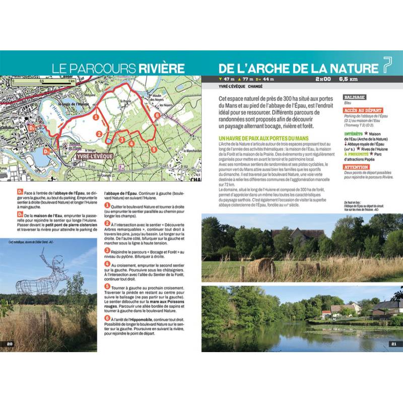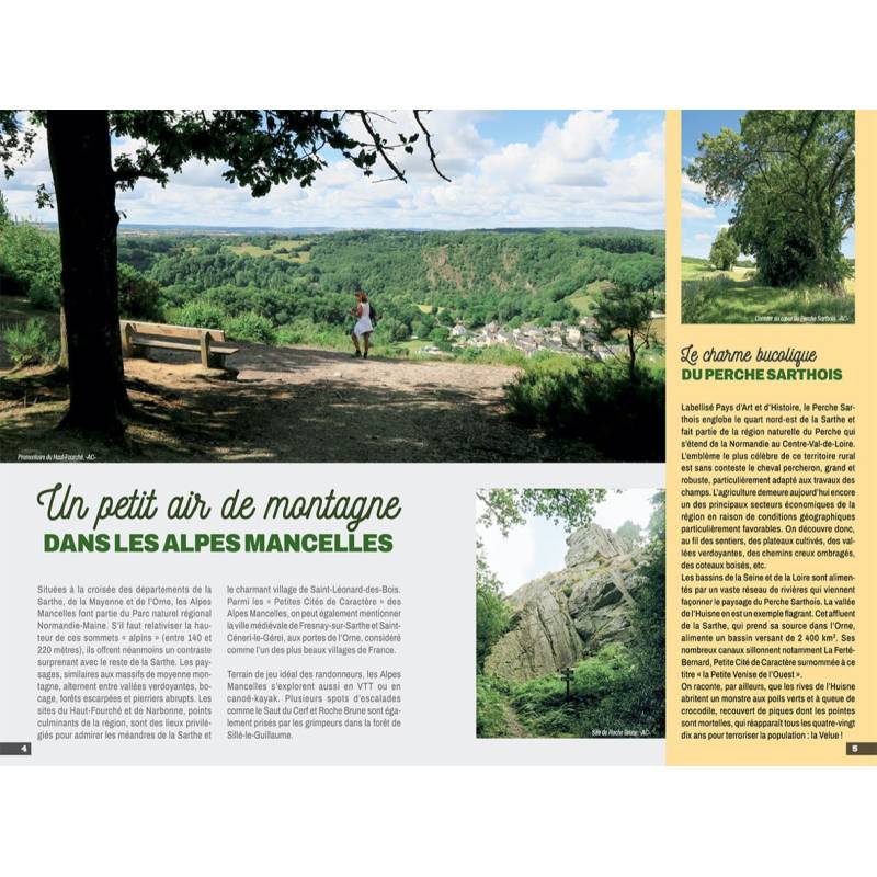 Le territoire concerné s'étend d'Alençon à La Flèche, et à l'ouest jusqu'à Montmirail. Recouvrant l'ancienne province du Haut-Maine, la Sarthe comprend également différentes entités paysagères qui permettront au randonneur d'y faire varier ses plaisirs. Ainsi arpentera-t-il le bocage, âme de la ruralité sarthoise, des forêts abritant des arbres remarquables tels que les séquoias de 40 m de la Fontaine-Pesée, les collines parfois très abruptes des Alpes mancelles, les bords de l'Huisne qui font de La Ferté-Bernard une petite Venise de l'Ouest .