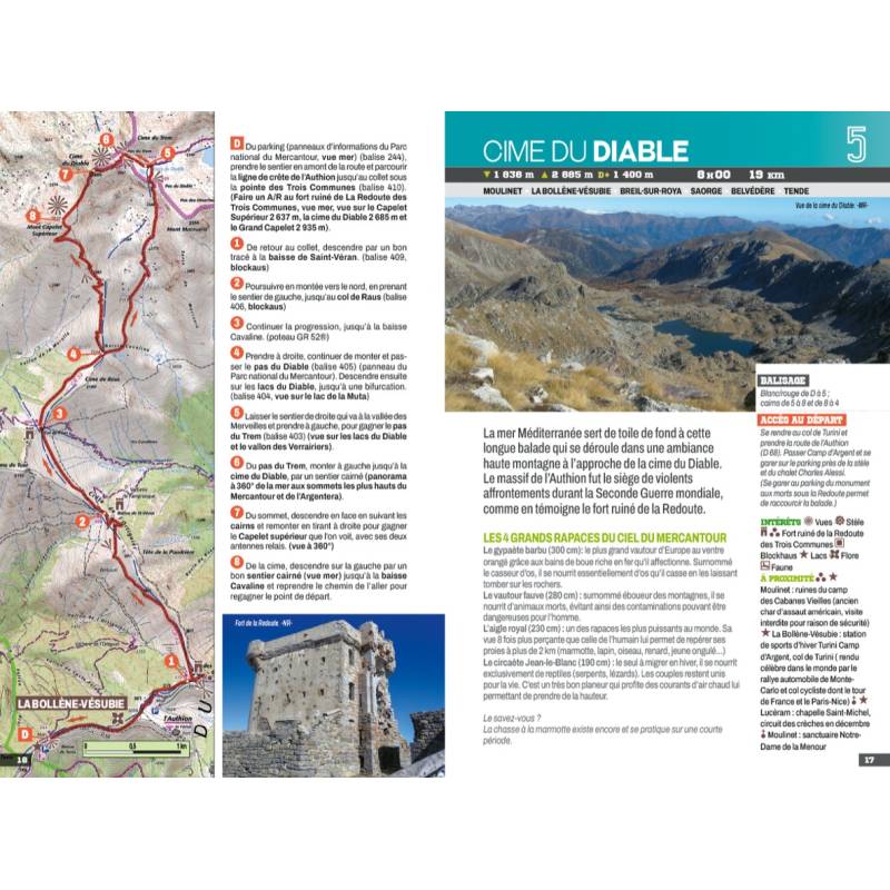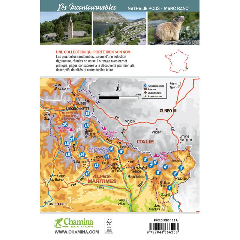Découvrez les circuits incontournables du Parc national du Mercantour, grâce au repérage minutieux de Marc Ranc et Nathalie Rous. Le territoire concerné s'étend du lac du Lauzanier au nord, au Breil-sur-Roya au sud, et du Super-Sauze à l'ouest à La Brigue à l'est. Entre lacs, cols, et sommets, les grands espaces rocailleux et les forêts de mélèzes s'offrent à vous. Des éclairages sur les richesses de la biodiversité propres au Mercantour ponctuent les itinéraires : espèces de rapaces présentes dans le Parc, papillons vivant dans ses montagnes, ou encore le tétras-lyre n'auront plus de secrets pour vous.