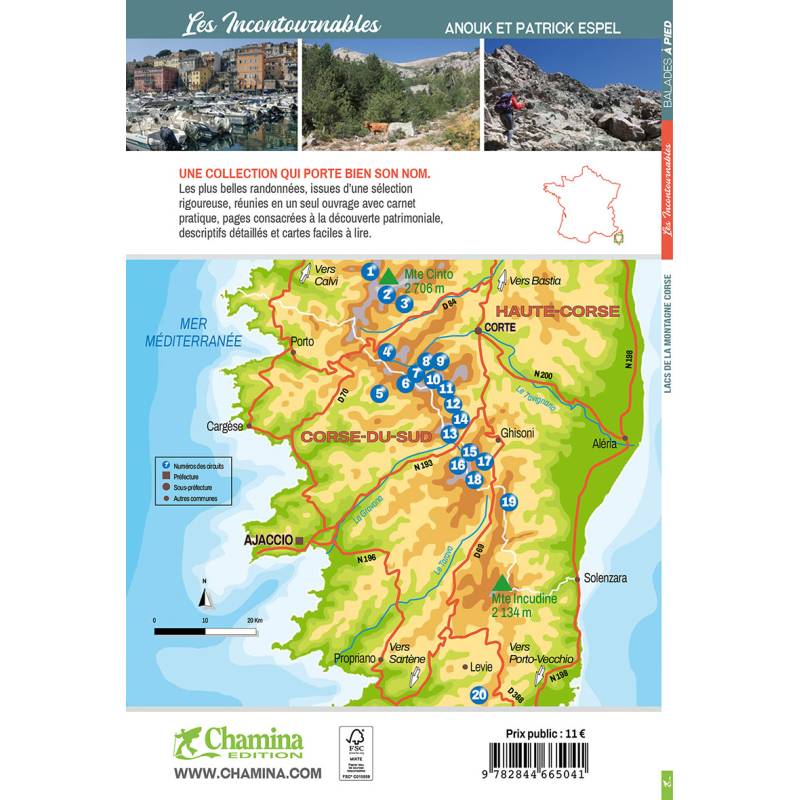 Ce guide recense 20 randonnées qui vous mèneront à la découverte de quelques lacs de la montagne corse, parmi les plus beaux. Principalement situés dans le nord-ouest de l'île de beauté, et en partie dans le massif du monte Cinto, les boucles proposées offrent des niveaux de difficultés variables, mais donnent la part belle aux randonneurs expérimentés, qui pourront s'en donner à coeur joie sur ces sentiers préservés et exigeants.