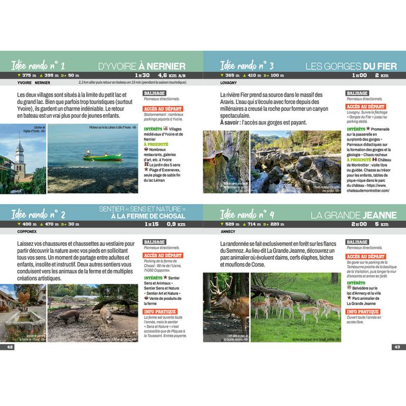 Ce topoguide a été spécifiquement pensé pour arpenter les montagnes de la Haute-Savoie avec des enfants. Les intérêts présents au fil des circuits permettront aux petits et grands de découvrir le territoire en s'amusant : fermes d'alpage, zones de départs de parapentes, lacs de montagne avec accès sécurisé, cascades impressionnantes... Parmi les 18 circuits cartographiés, 3 ont été choisis car ils permettent d'atteindre un refuge, pour une pause bien méritée pendant le parcours. L'auteure a également pris soin de proposer une alternative plus longue afin d'avoir une option permettant d'aller plus loin que la boucle proposée. De plus, 10 idées bonus sont disponibles, avec les informations clefs pour chacune : l'accès au départ, la durée et les intérêts des circuits. Enfin, les textes thématiques sont également rédigés de façon pédagogique, pour aider les enfants à comprendre leur environnement.