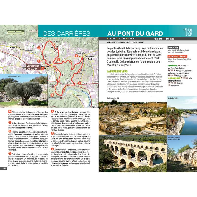 Une sélection des plus beaux itinéraires dans le département du Gard avec notamment : Aigues-Mortes, Le Grau-du-Roi, Nîmes, les gorges du Gardon, Uzès, le pont du Gard, Lirac, La Roque-sur-Cèze, la forêt de Valbonne, le cirque de Navacelles, Alès ou encore Aujac.