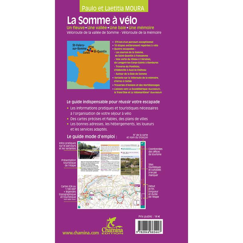 Avec cet itinéraire entièrement repéré par l'auteur, suivez la Somme depuis Saint-Quentin jusqu'à Saint-Valery-sur-Somme, où la rivière se jette dans la fameuse baie, splendide. Avec un autre départ possible à Arras, cette véloroute met sur votre chemin Péronne et son Historial de la Grande Guerre, le canal de la Somme, la ville d'Amiens, le château de Rambures Un tracé de 371 km à réaliser en 14 étapes et 4 escapades à travers les départements de la Somme, de l'Aisne et du Pas-de-Calais.Les auteurs :