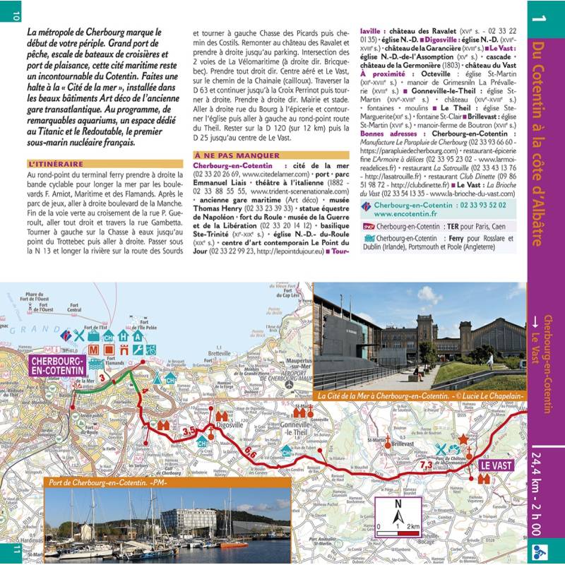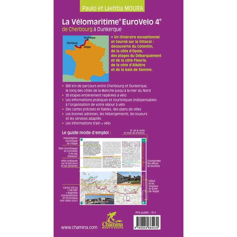 Au programme de ce guide : 750 kilomètres d'itinéraire le long des côtes de la Manche, depuis la ville de Cherbourg jusqu'à celle de Dunkerque. Découpé en 28 étapes, ce circuit exceptionnel emprunte de nombreuses voies aménagées et routes à faible circula-tion. L'occasion de rouler avec pour décor les plus beaux paysages maritimes du nord de la France : les plages du Débarquement, la côte d'Albâtre et ses falaises de craie, puis la côte d'Opale et la baie de Somme. En passant par des villes pittoresques telles que Deauville, Honfleur, Étretat, Le Touquet, Boulogne-sur-Mer