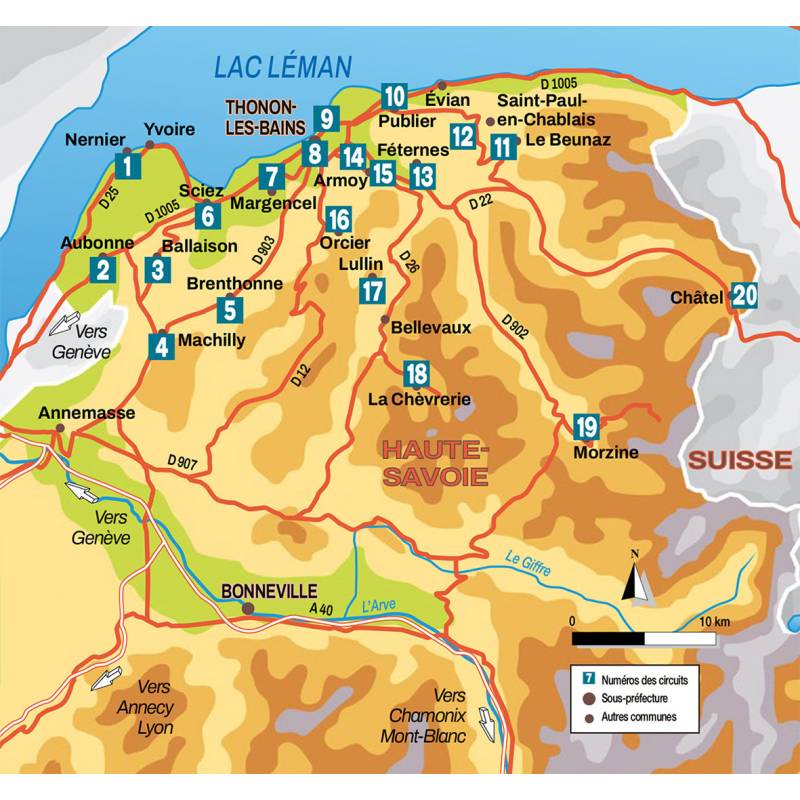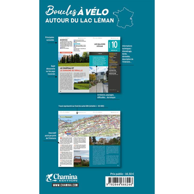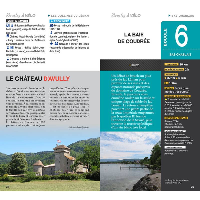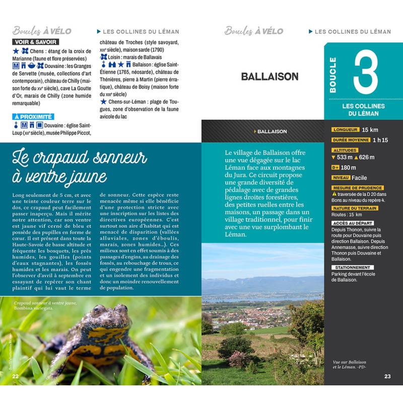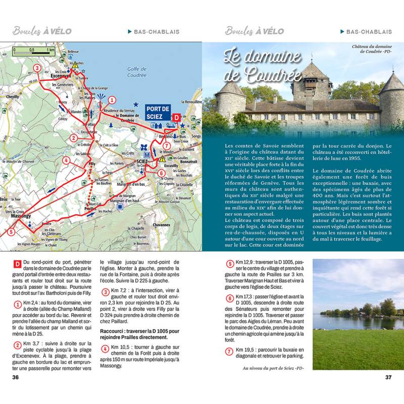 Les boucles sélectionnées par l'auteur sont principalement situées au sud du lac Léman, dans le bas Chablais, pour découvrir les nombreux attraits de ce pays . En plus des bourgs médiévaux (Yvoire) et des circuits urbains (Thonon-les-Bains, Evian), il faudra prendre un peu de hauteur pour profiter de vues dégagées sur le Léman.