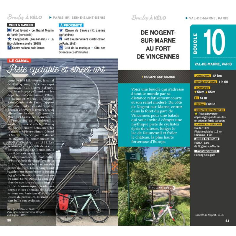 Vous résidez en Ile-de-France et désirez profiter de la région en pédalant ? Ce guide est fait pour vous. Marcolino da Costa a arpenté les pistes cyclables et les routes du territoire afin de créer 20 boucles à vélo, chacune faisant entre 12 et 30 km. Toutes les balades partent d'une gare de RER, Transilien, ou TER au départ de Paris afin d'y accéder facilement. De plus, chaque circuit est agrémenté de 2 textes patrimoniaux apportant un éclairage sur les intérêts présents au fil de l'eau.