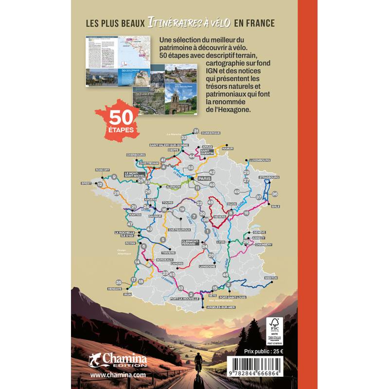 Les plus belles voies vertes & véloroutes pour découvrir la France sous toutes ses formes, une sélection du meilleur du patrimoine à vélo. Découvrez une sélection de 50 étapes, chacune offrant une expérience unique enrichie par un descriptif terrain présentant des trésors naturels et patrimoniaux qui font la renommée de chaque département. Des traces qui quadrillent la France grâce à des cartes précises et lisibles sur fond IGN au 1 : 100 000.