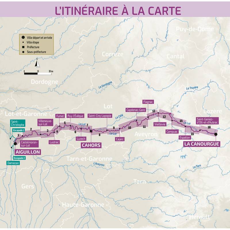 430 km entre la Canourgue, située en Lozère, à Aiguillon, dans le Lot-et-Garonne.